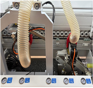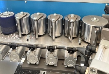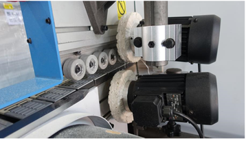 V kayış ve Motorlu sistem ile kontrol edilen tekerleklerden oluşur. İş parçasının üzerindeki baskıyı homojen yayarak, parçanın makinede ilerlerken oynamasını engeller. Parlak yüzeylerde iz yapmaz.